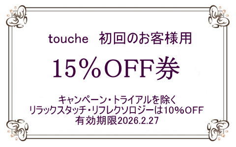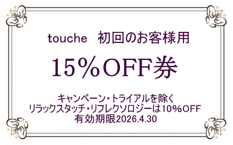 ホームページのcoupon提示で15%OFF(一部メニュー10%)